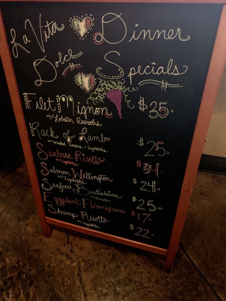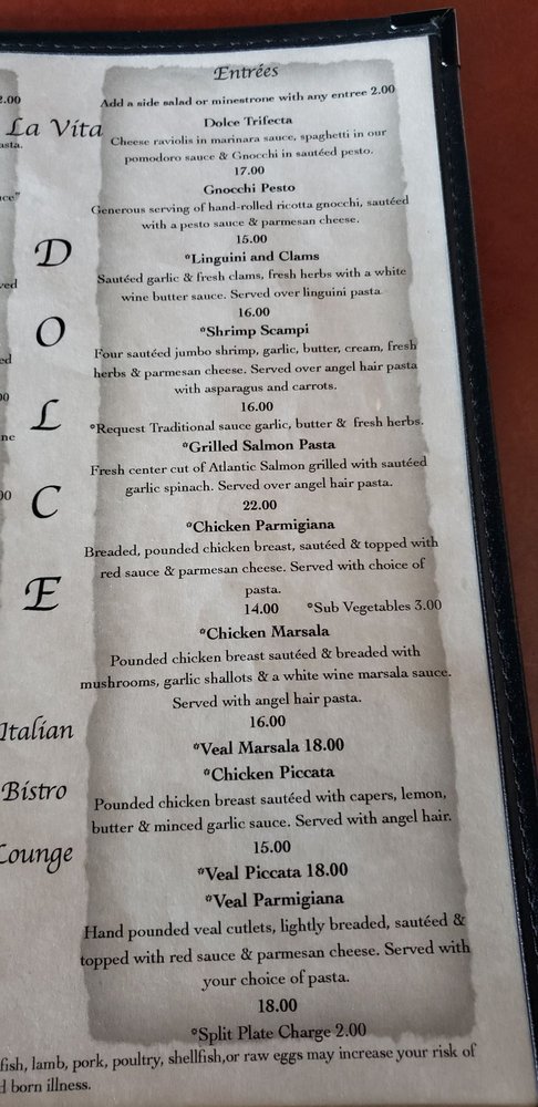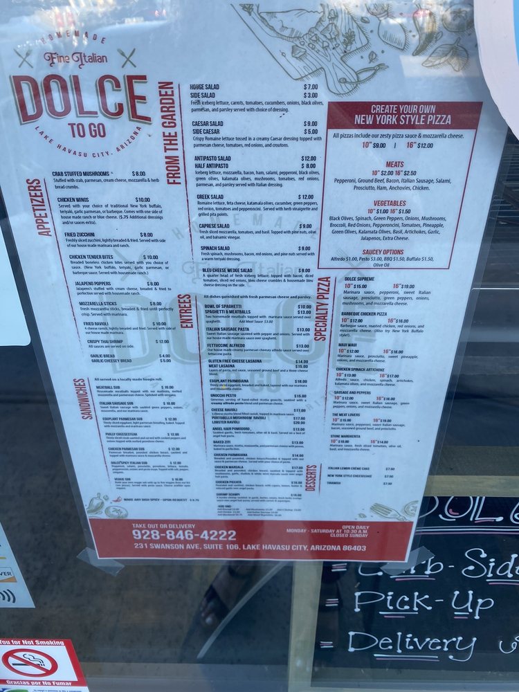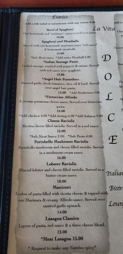La Vita Dolce Italian Bistro and Lounge is a must-visit in Lake Havasu City for delicious Italian cuisine. With a wide range of options, this casual spot offers vegan and vegetarian choices, perfect for groups and families. The friendly wait staff ensures a pleasant experience, while the full bar and happy hour specials add to the fun atmosphere. Standout dishes like the Salmon with Vegetables and Garlic Risotto and the Chicken Marsala showcase the skillful preparation here. Customers rave about the generous portion sizes and attentive service, making it a go-to for locals and tourists alike. Don't miss out on trying the homemade gnocchi and flavorful meatballs at La Vita Dolce.